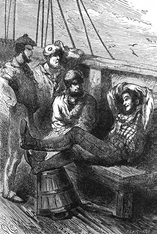 „Dobrá! je-li pak tam gin?“[25] ozval se plavec, jenž byl náramným milovníkem tohoto nápoje.